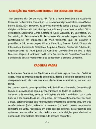 A Academia Cearense de Medicina decreta, com imenso pesar, Luto Oficial, por 7 dias, devido à perda do valoroso e inesquecível confrade Dr. Iran Rabelo.
